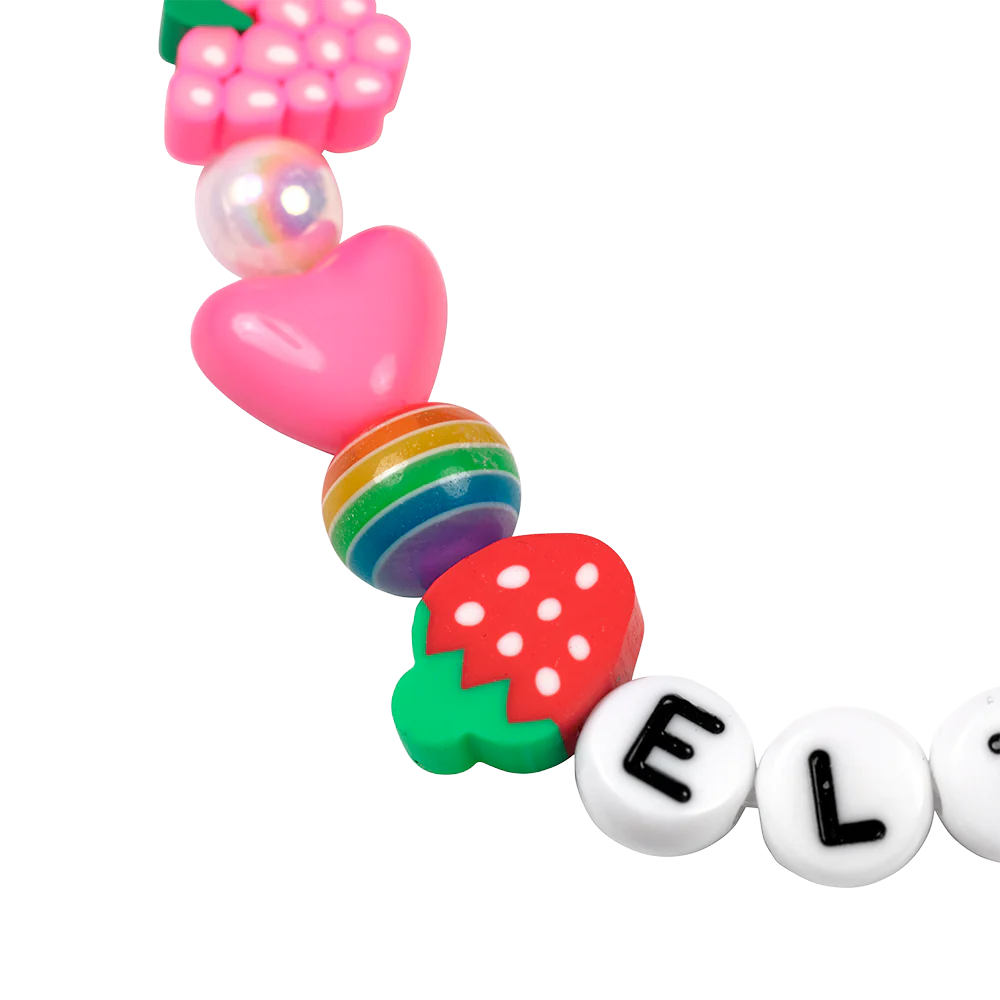 A pair of colourful friendship bracelets with acrylic beads and ELTON and BRANDI letter beads.